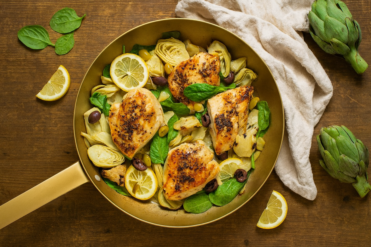 Če bi morali ujeti okus poletja v eno jed, bi bil to prav gotovo piščanec z limono in artičokami. Sočna jed, ki jo lahko pripravite v eni sami ponvi, je pravi poklon mediteranskemu načinu kuhanja – preprostemu, a polnemu življenja. Svežina limone, nežna grenkoba artičok in mehko meso piščanca ustvarijo kombinacijo, ki diši po toplih večerih ob morju, čeprav jo lahko povsem brez težav postrežete v mestnem stanovanju sredi tedna.